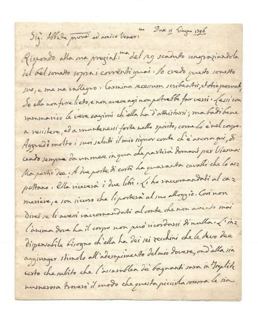 Duchcov Castle in Bohemia, 11th June 1796, 3 pp. in-4° in italian
