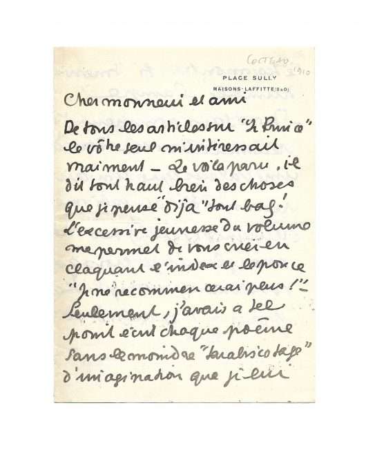 Maisons-Laffitte, [1910], 4 pp. in-12 carré