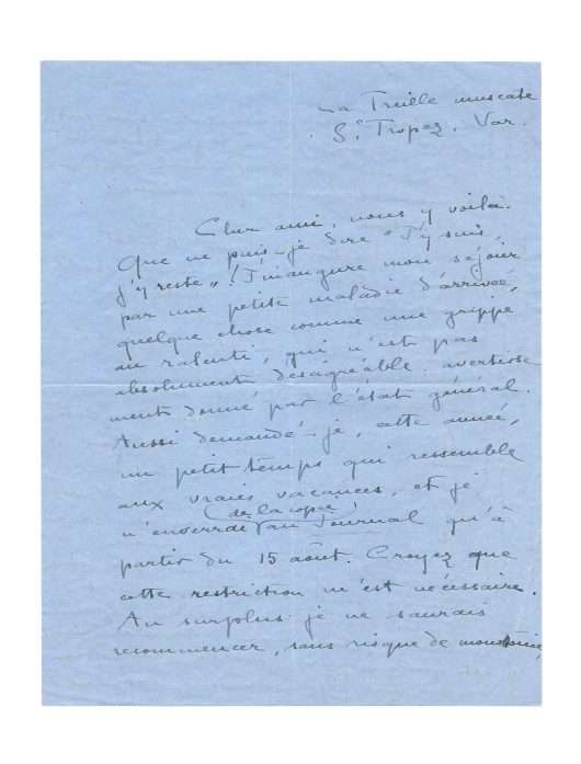 La Treille muscate – Saint Tropez [30s], 2 p. in-4° with envelope