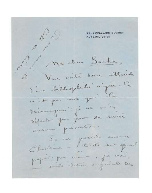 Autograph letter signed « Colette de Jouvenel » to her « dear Sacha »