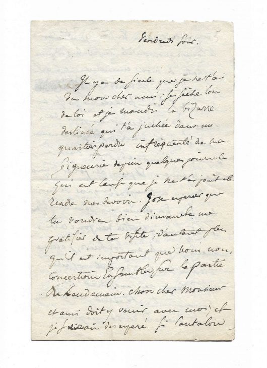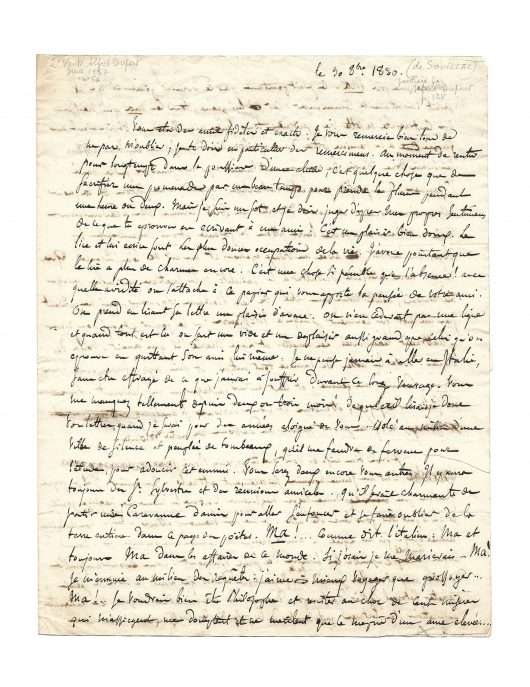 Autograph letter signed « G.S. » to Eugène Delacroix