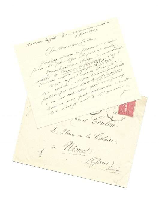 Autograph letter signed “Ernest Delahaye” à Marcel Coulon