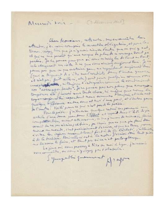 Autograph letter signed « Aragon » [to André Rousseaux]