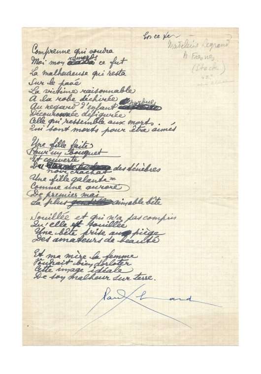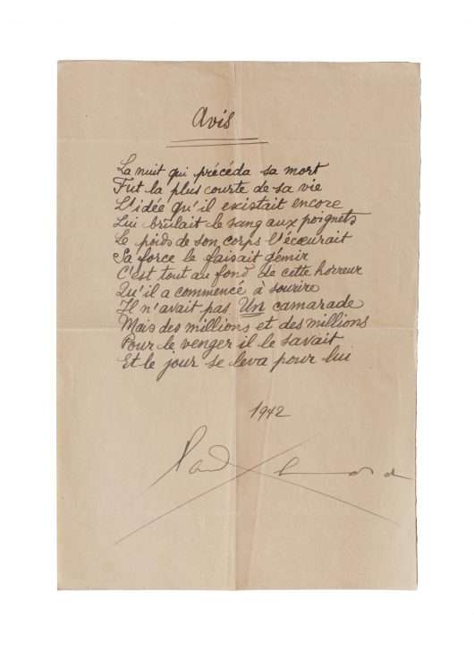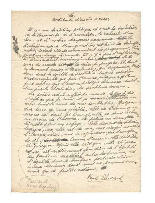 Autograph poem signed “Paul Eluard”