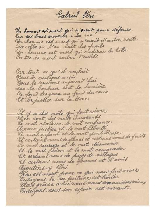 Autograph poem, in honor of Gabriel Péri