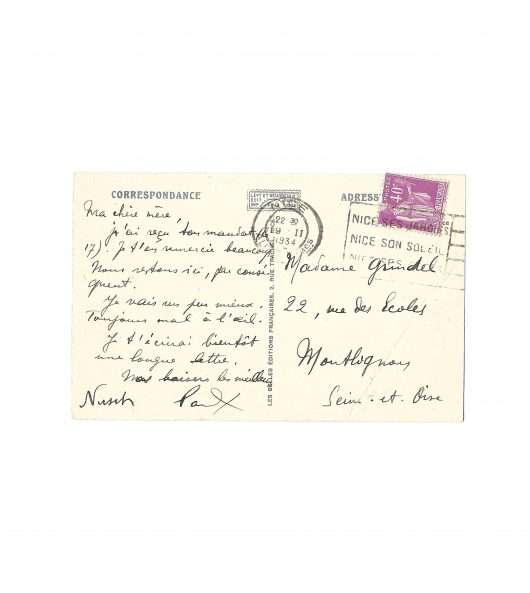 [Nice, 19th November 1934], 1 p. in-8°