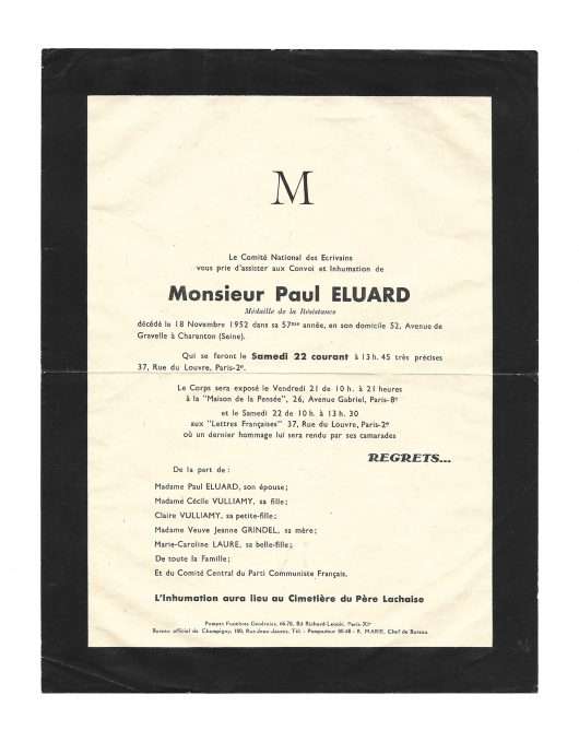 Scare death notice of Paul Eluard