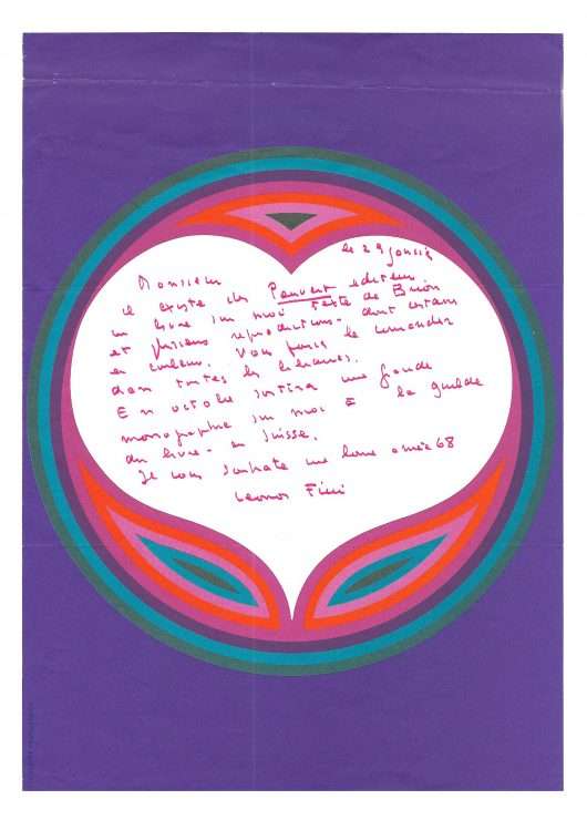 Autograph letter signed « Leonor Fini » [to Gérard Leman]