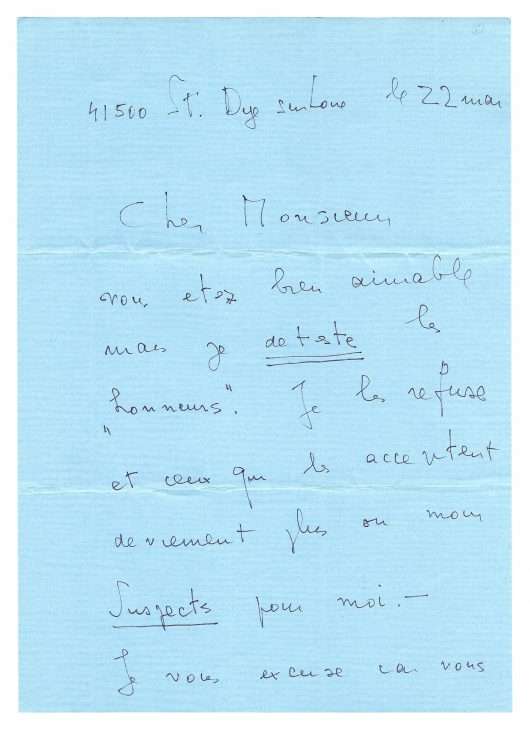 [Saint-Dyé-sur-Loire] « 22 May » [1979], 4 pp. in-folio