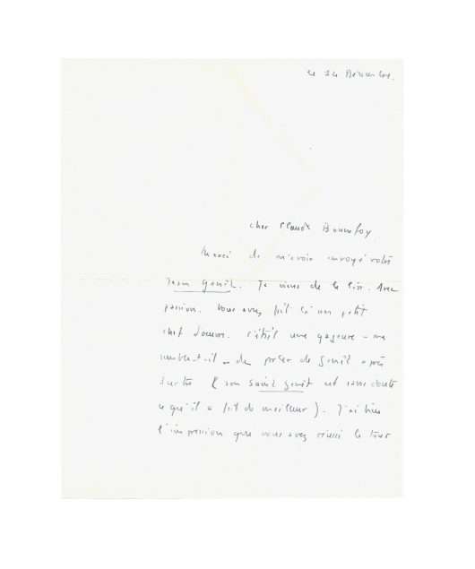 Autograph letter signed “M Foucault” to Claude Bonnefoy