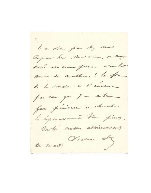 Autograph letter signed « Victor H.» to an unknown recipient