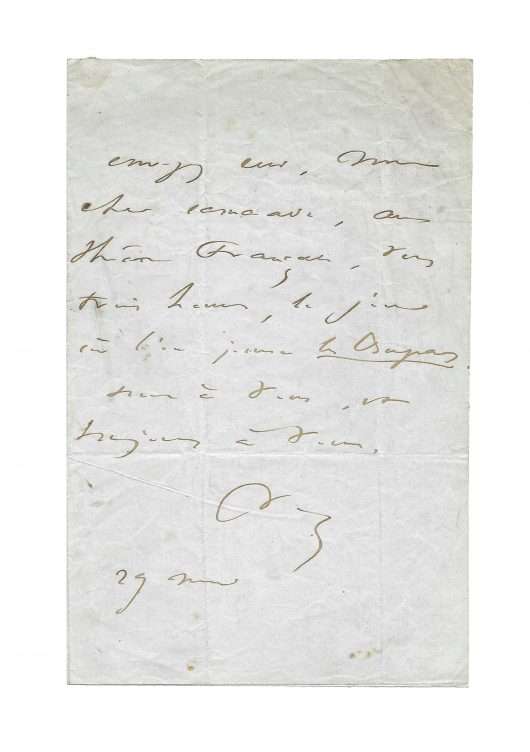 Paris, 12 8bre [October] [1873], 1 p. 1/2 in-8° on blue paper