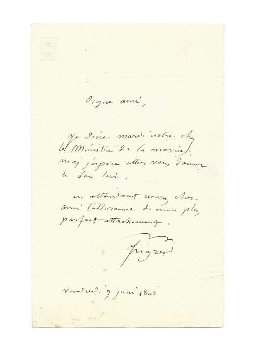 N.p [Paris], Friday 9th June [1843], 1 page in-8, address on verso