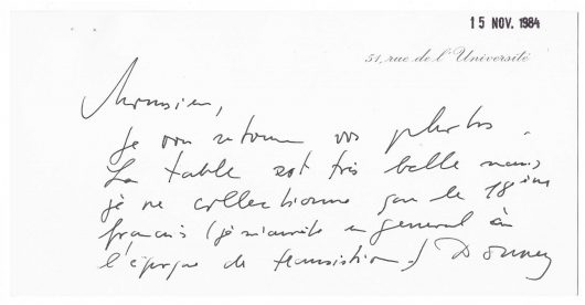 [Paris], 51 rue de l’université, le 15 nov[embre] 1984