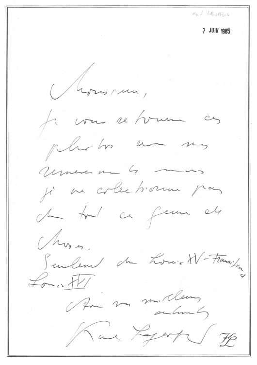 Lettre autographe signée “Karl Lagerfeld” à un Monsieur