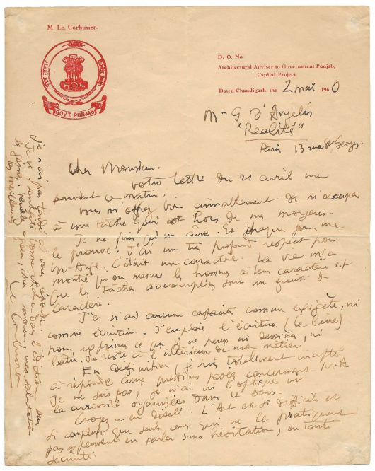 Lettre autographe signée « Le Corbusier » à Gaston d’Angelis