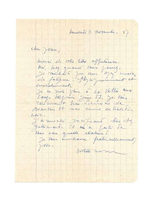 S.l., 6 november [19]57, 1 p. in-8° on lined paper