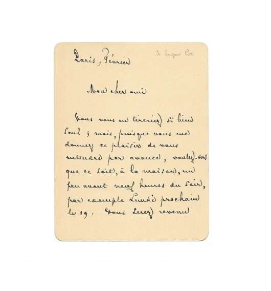 [Paris, new year 1898], 1 p. in-24, with autograph envelope