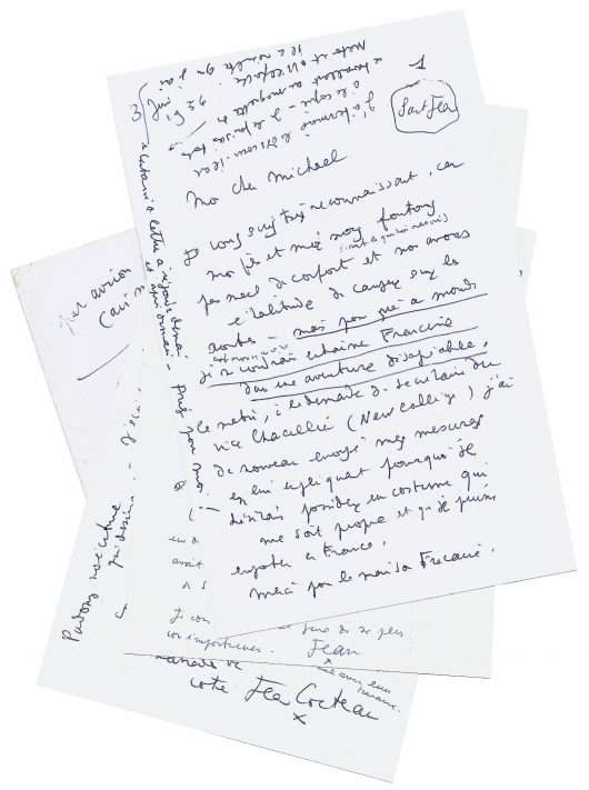 Autograph letter signed twice « Jean Cocteau » and « Jean » to Michaël Smithies