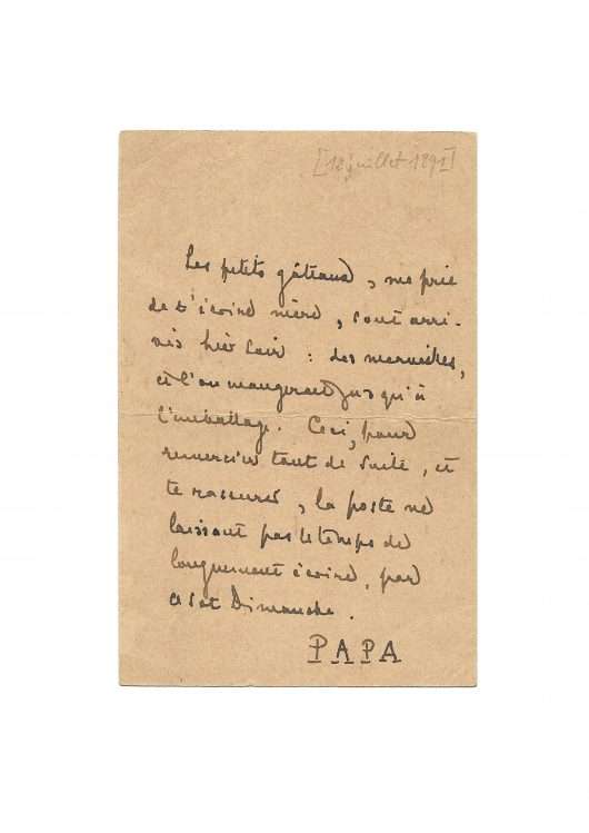 Autograph card signed « PAPA » to his daughter Geneviève Mallarmé