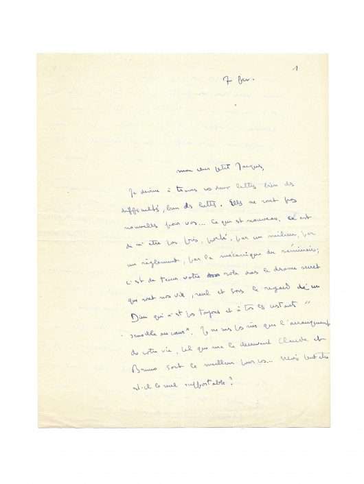Autograph letter signed « François Mauriac » to Thierry Maulnier