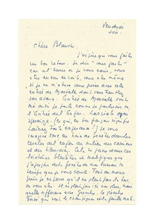 [Manosque] Friday evening [fall 1949], 3 p. in-8°