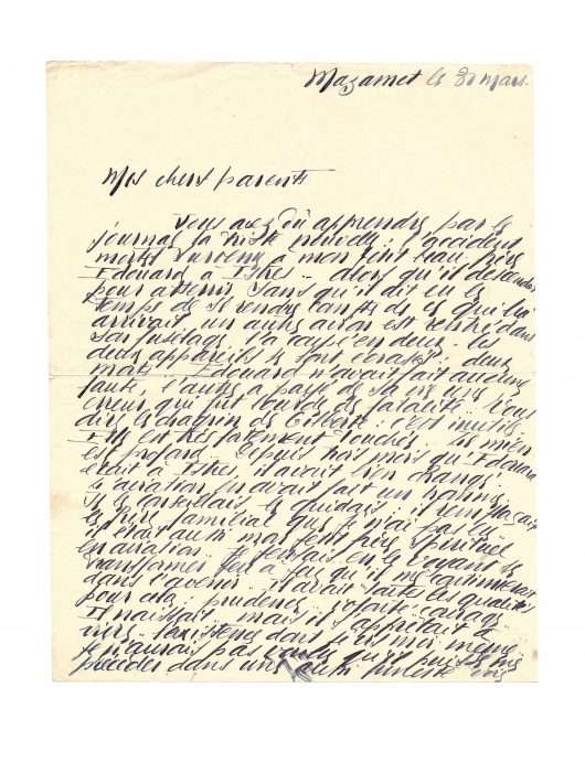 Mazamet 31st March [1935], 1 p. ¾ in-4