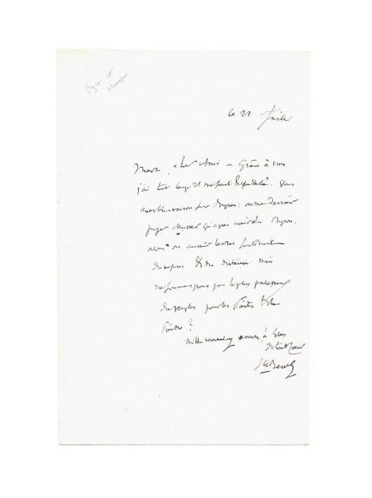 N.p.n.d, « this 21st July », 1 p. in-8° on creamy paper