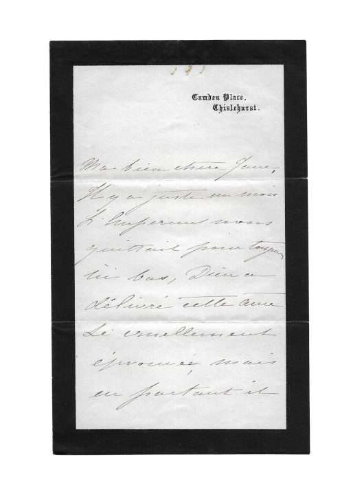 [Camden Place, Chislehurst] 13th January [1875], 8 pp. in-8°, mourning paper
