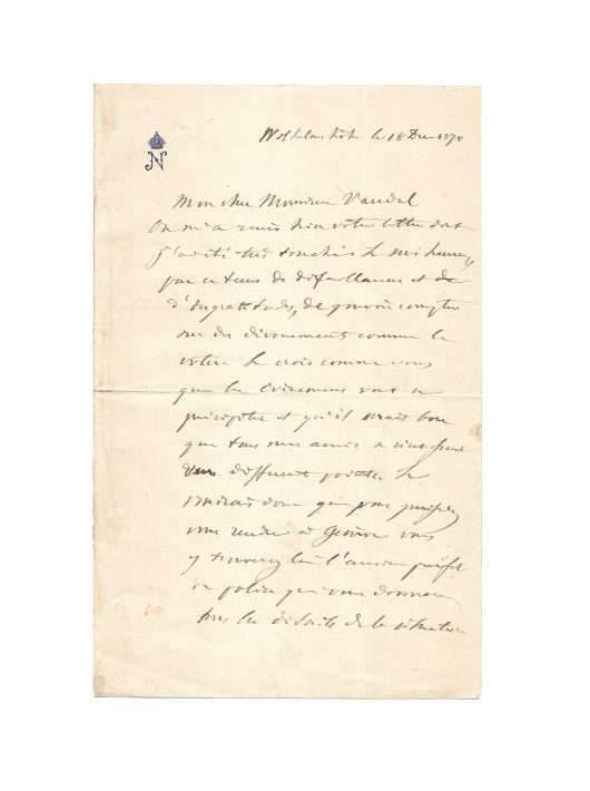 Autograph letter signed « Napoléon » to Édouard Vandal