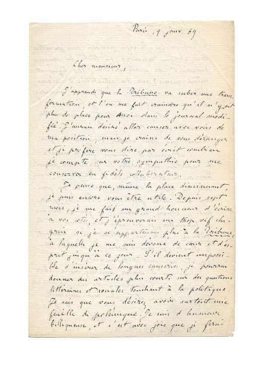 Paris, January 9th 1869, 2 pages in-8 on laid paper