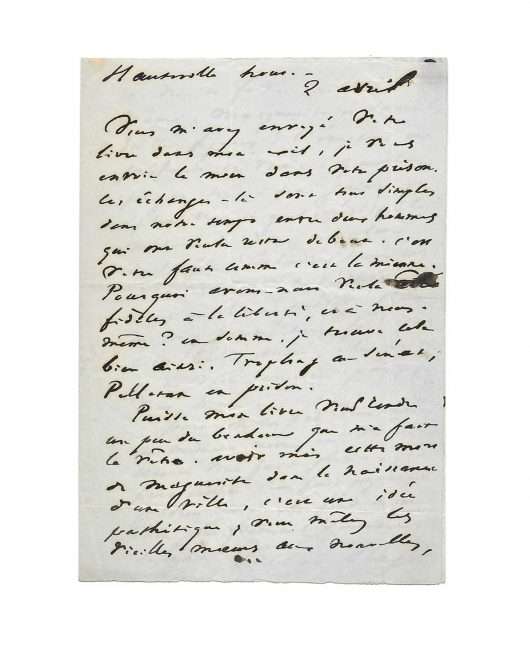 Hauteville House, 2nd April [1861], 2 pages in-8 on double sheet