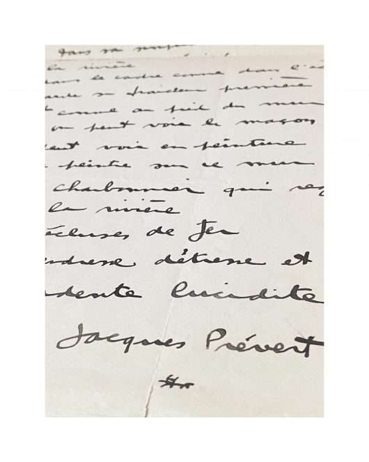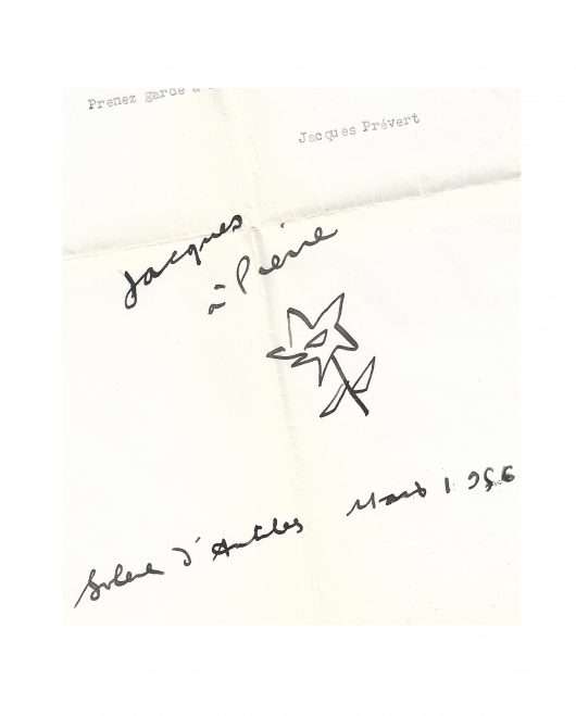 Original drawing signed “Jacques Prévert” to Pierre Béarn
