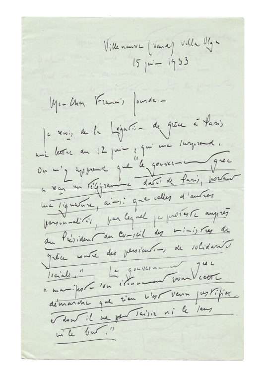Villeneuve (Vaud) [Switzerland], 30th January 1924, 2 p.1/2 in-8°