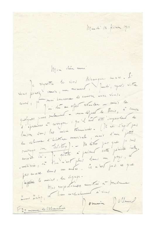 Autograph letter signed « Romain Rolland » to Louis Chazai