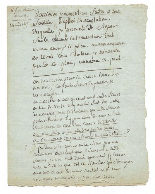 [Asile de Charenton], 6th Fructidor an 13 (24th August 1805) 4 pages in-8