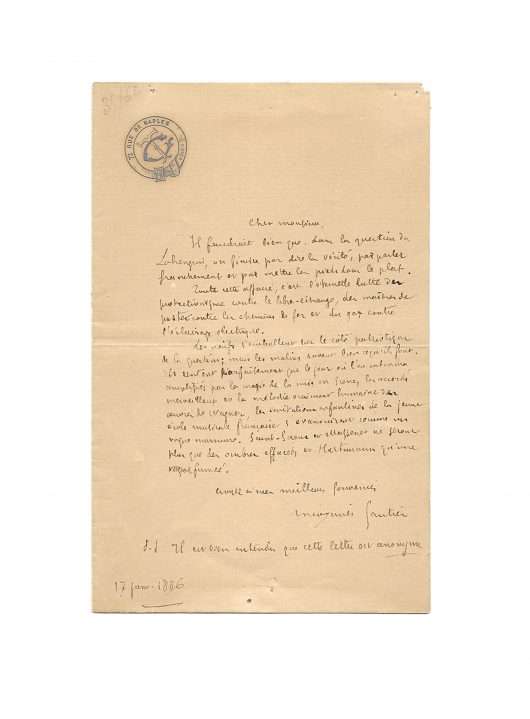 [Paris], 17th Jan[uary] 1886, 1 p. in-8°