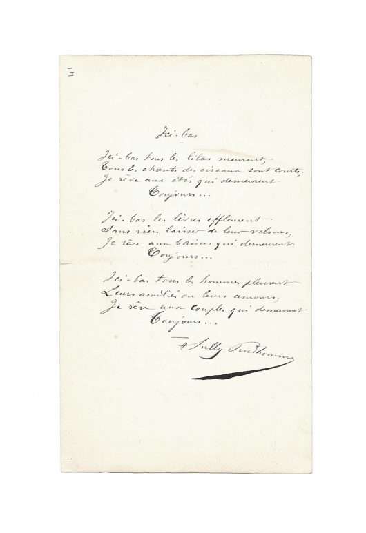 « Here below, all men weep / Their friendships or their loves / I dream of the kisses that remain / Always… »