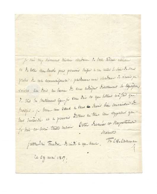 Autograph letter signed “Thérésia de Cabarrus” to an ungrateful brother