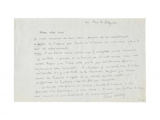 Autograph letter signed « Paul Valéry » to Maurice Noël