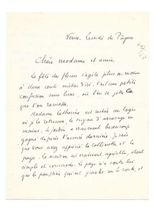 Vence, [N.d], Easter [between 1921 and 1928], 2 pages 1/2 in-8