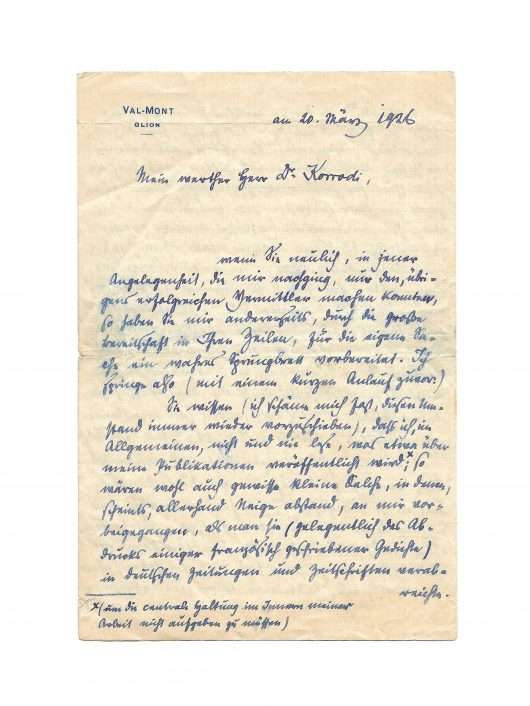 [Glion] 20 March 1926, 8 p. in-8° in blue ink