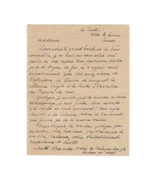 Autograph letter signed « Comte Alexandre-Marie de Maleperche » to Noémi Révelin