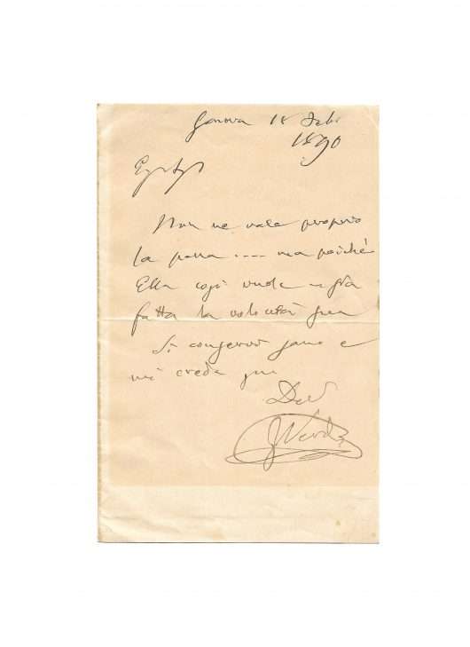 Genova, 18 febb. [February] 1890, 1 p. in-8° on bi-folio