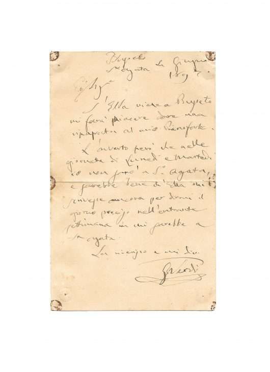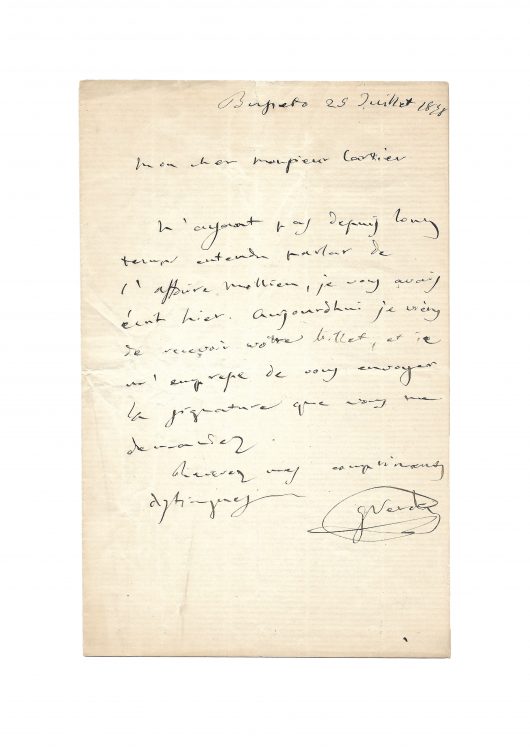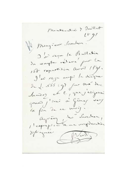 Busseto, Sant’Agata, 4 Giugno [June] 1897, 1 p. in-8°, with envelope