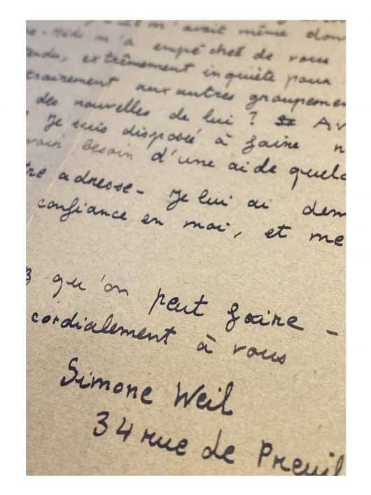 Autograph letter signed “Simone Weil” to Henri Guilbeaux