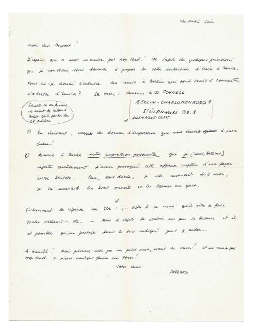 [October 1970 ?], Friday evening, 2 pp. in-8°