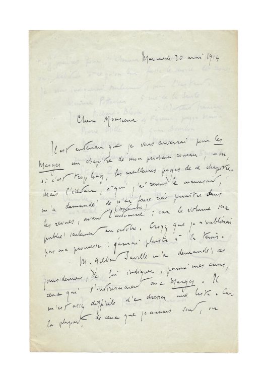 [Paris], 20 May 1914, 2 p. in-8° on pale green paper